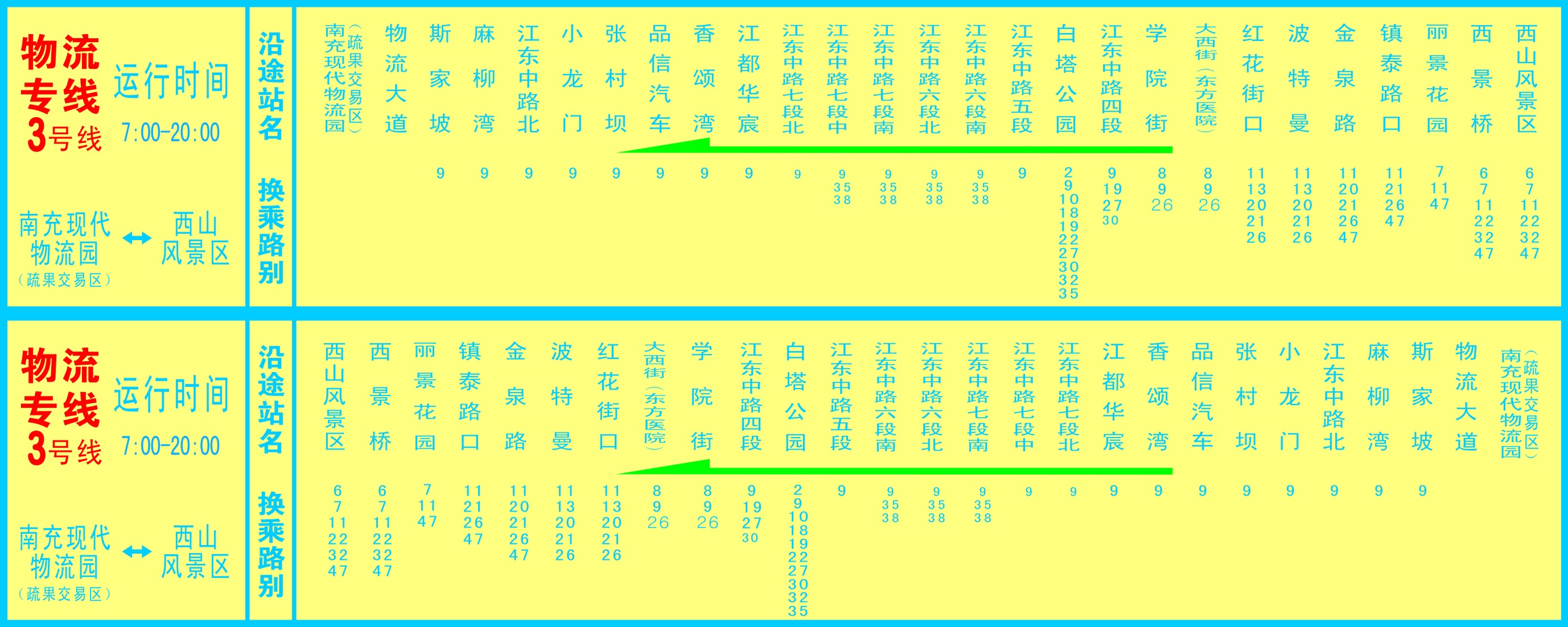 物流專線3號(hào)線:南充現(xiàn)代物流園----西山風(fēng)景區(qū)