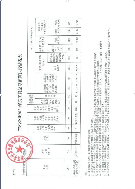 市屬企業(yè)2021年度工資總額預(yù)算執(zhí)行情況表