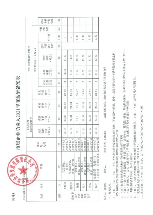 市屬企業(yè)負責(zé)人2021年度薪酬備案表