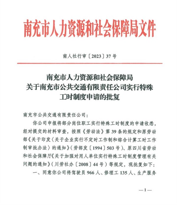 市人社局關(guān)于市公交公司實(shí)行特殊工時(shí)制度申請(qǐng)的批復(fù)