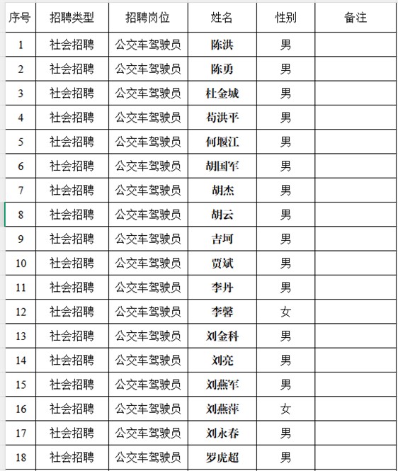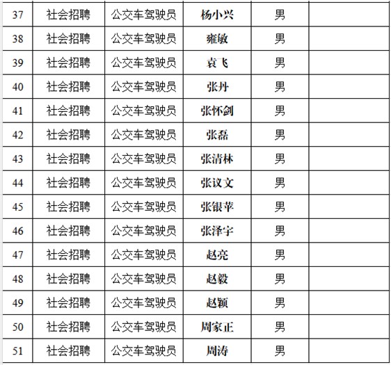 2025年第一期招聘公交車駕駛員擬錄用人員名單公示