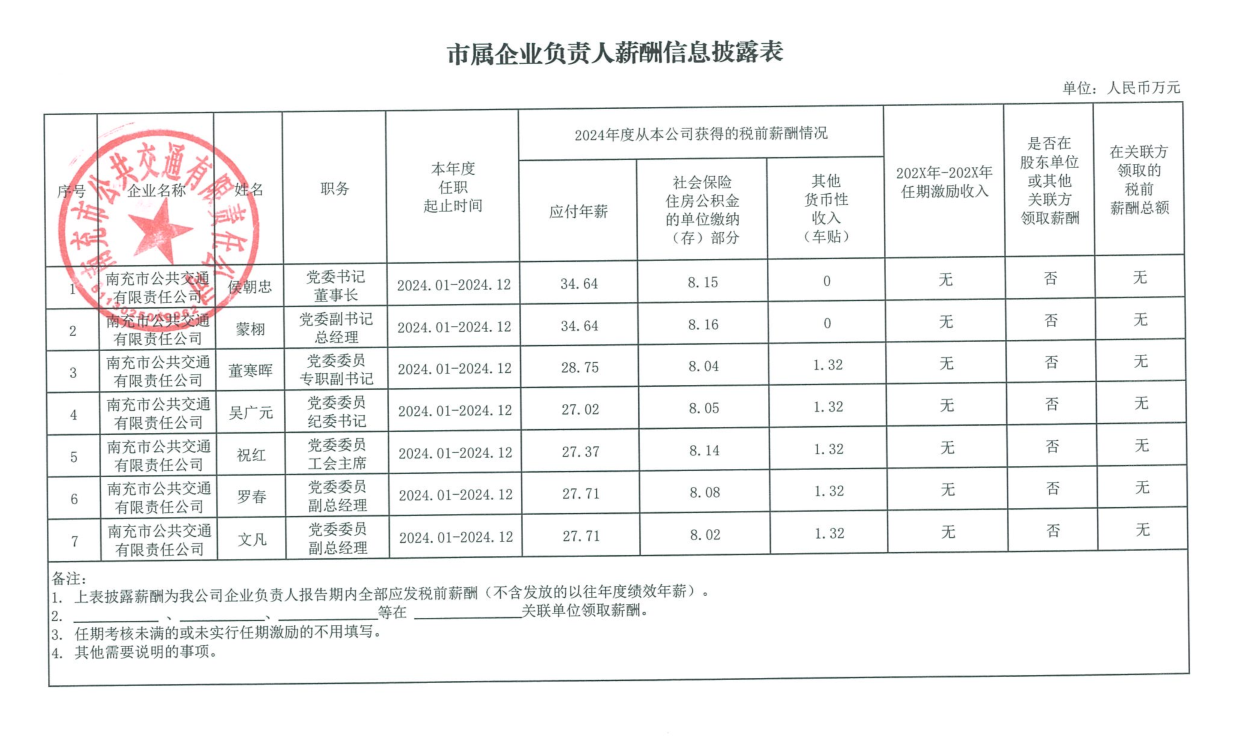 市屬企業(yè)負(fù)責(zé)人薪酬信息披露表