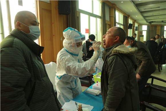 檢測(cè)過程中,被檢人員分時(shí)段、分批次進(jìn)入檢測(cè)現(xiàn)場(chǎng)并全程佩戴口罩、測(cè)量體溫、有序排隊(duì),現(xiàn)場(chǎng)信息核對(duì)、領(lǐng)取條碼、逐一進(jìn)行核酸檢測(cè)。