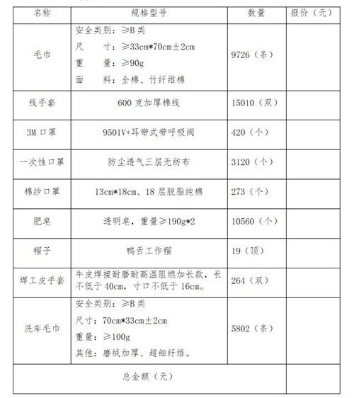 2023年勞保用品采購項(xiàng)目預(yù)算價(jià)格公開征詢公告